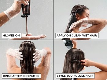 Laita suojakäsineet käteen ja levitä puhtaisiin, kosteisiin hiuksiin,Levitä hiuspohjasta kohti hiusten pituuksia, kunnes koko hiukset on peitetty. Anna vaikuttaa 10 minuuttia. Pidä suojakäsineet kädessä ja huuhtele huolellisesti, kunnes huuhteluvesi on täysin kirkasta. Muotoile hiukset tavanomaiseen tapaan. KAIKILLE HIUSTYYPEILLE. Ei suositella harmaiden hiusten peittoon.